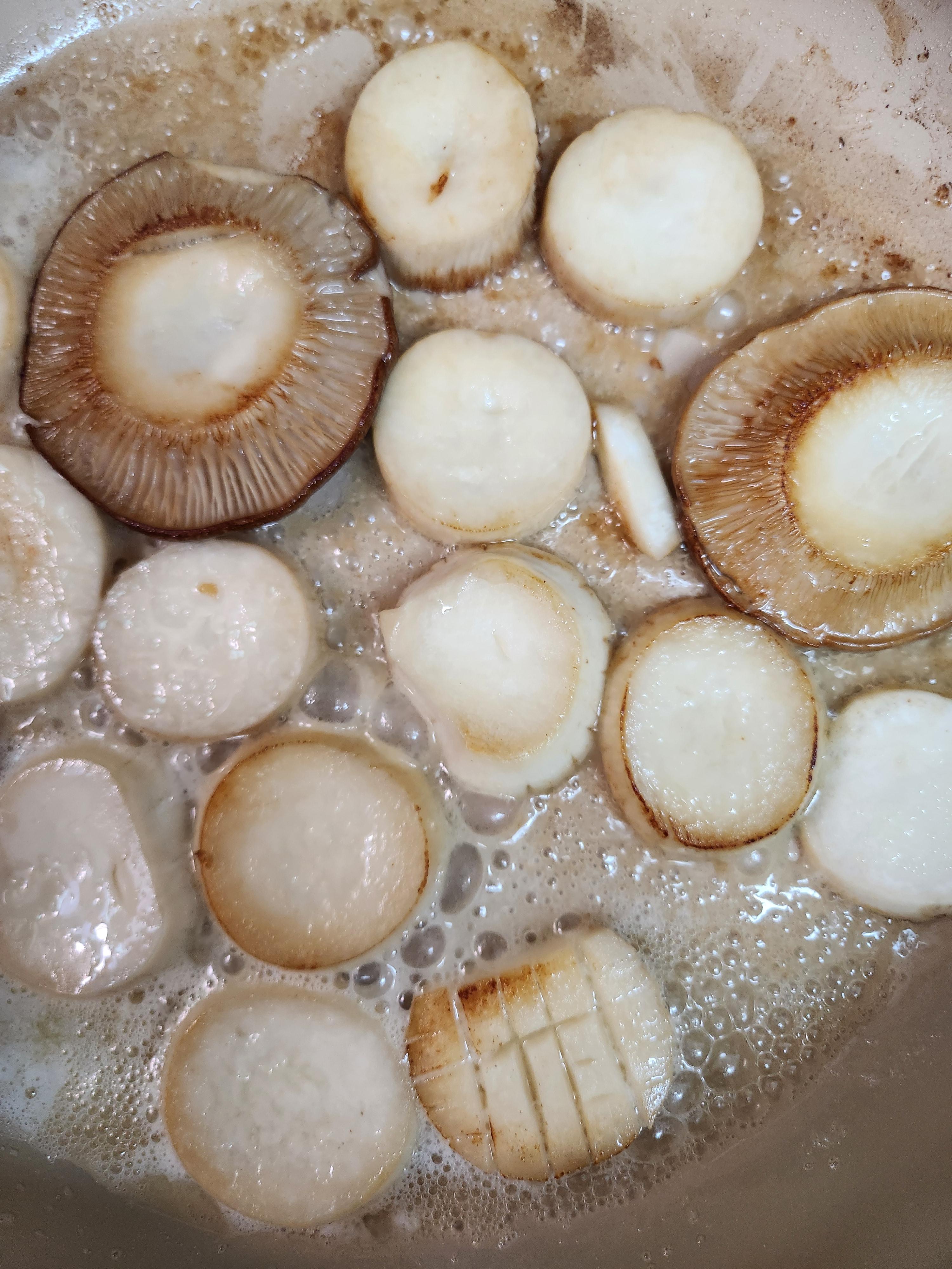 두부는 부쳐두고, 버섯은 채 썰기